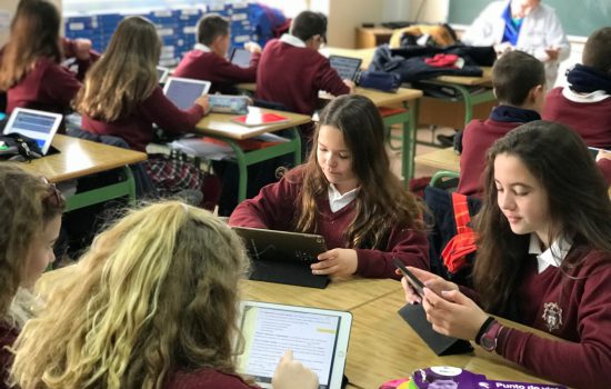 Los alumnos utilizan sus propios dispositivos cada día, facilitando de este modo la transición del libro de texto a las secuencias digitales y al uso de apps educativas. El objetivo es el iPad como herramienta educativa.